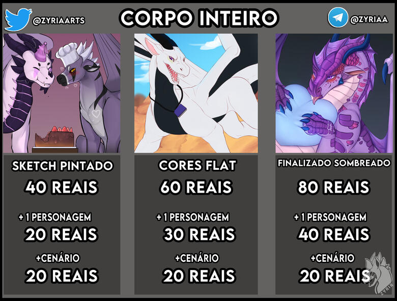 - Você precisa ter mais de 18 anos para me commissionar.- Saiba o que quer pedir! sua commission irá demorar muito mais tempo se você não sabe o que quer.- Caso os personagens sejam muito complexos será cobrado extra.- Você pode usar a arte que comprou para uso não comercial, não pode vender a arte que fiz, tudo pode ser negociável.- Eu costumo postar arte commissionada publicamente, se você quiser uma commission privada podemos conversar.- Não gosto que me apressem, por favor, respeite meu tempo! se não te enviei algo sobre a arte é porque não está pronto.- O tempo máximo para entregar uma commission é de 2 semanas, eu costumo entregar em menos de uma semana, mas imprevistos acontecem, avisarei se algo acontecer!- Novamente, Peço que seja claro quando for explicar o seu pedido, por favor.- Pagamento primeiro sempre! e só posso reembolsar você se não tiver terminado o primeiro esboço, então, por favor, só me encomende se confiar na minha arte! ♥- Posso corrigir meus erros na arte, como a pose da cabeça, cauda, pata, acessórios, etc. mas não posso corrigir poses inteiras quando o desenho estiver na etapa de contorno ou finalizado, então preste atenção nas imagens que mando de como está ficando o desenho, avise-me de qualquer erro.- Não guardo todas as artes no meu computador, deixo-as no meu Google Drive, mas se ficar sem espaço terei de apagar as commissions muito antigas, por isso guarde sempre as commissions.- Eu aceito Pix, PicPay, Nubank, boleto e transfêrencia bancária como meios de pagamento.